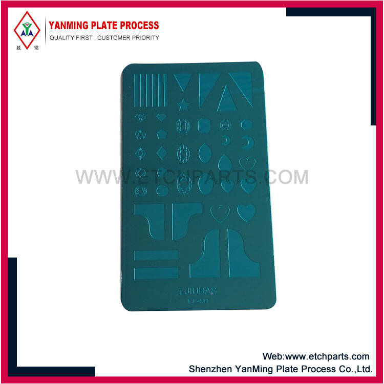 YanMing es una de las principales fábricas de grabado fotográfico en China, que suministra diferentes tipos de plantillas de estampado de uñas de acero inoxidable con nuestras últimas líneas de producción de grabado químico ácido de ácido químico según sus propios diseños, nos dedicamos a ofrecer la mejor plantilla de estampado de uñas de acero inoxidable y otras productos de grabado de metales, le invitamos a visitar nuestra fábrica de grabado a su conveniencia o envíe su consulta a hearten@paneloverlay.com.